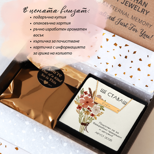 Подарък за съобщаване на бременност за бъдеща баба - колие с гравиран надпис "баба"