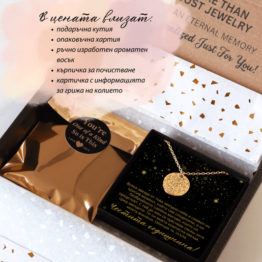 Персонализиран подарък за рожден ден за жена - колие със звездна карта